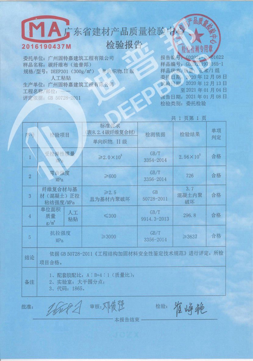 定时更新配方,旨在为您提供安全有保障的加固材料。每年定期送检,检测通过率100%,符合GB50728-2011《工程结构加固材料安全性鉴定技术规范》A级标准,通过环保报告鉴定。